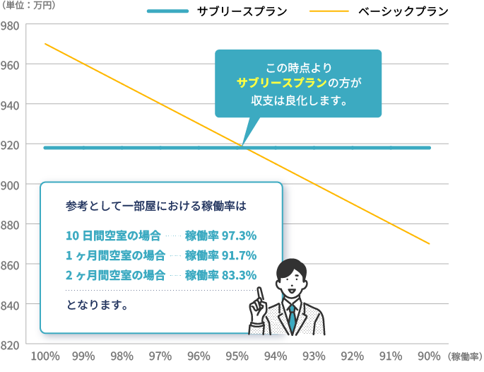 初期は成果連動型で実際に高く貸し出せた場合オーナー様の収入が増える仕組みを採用。