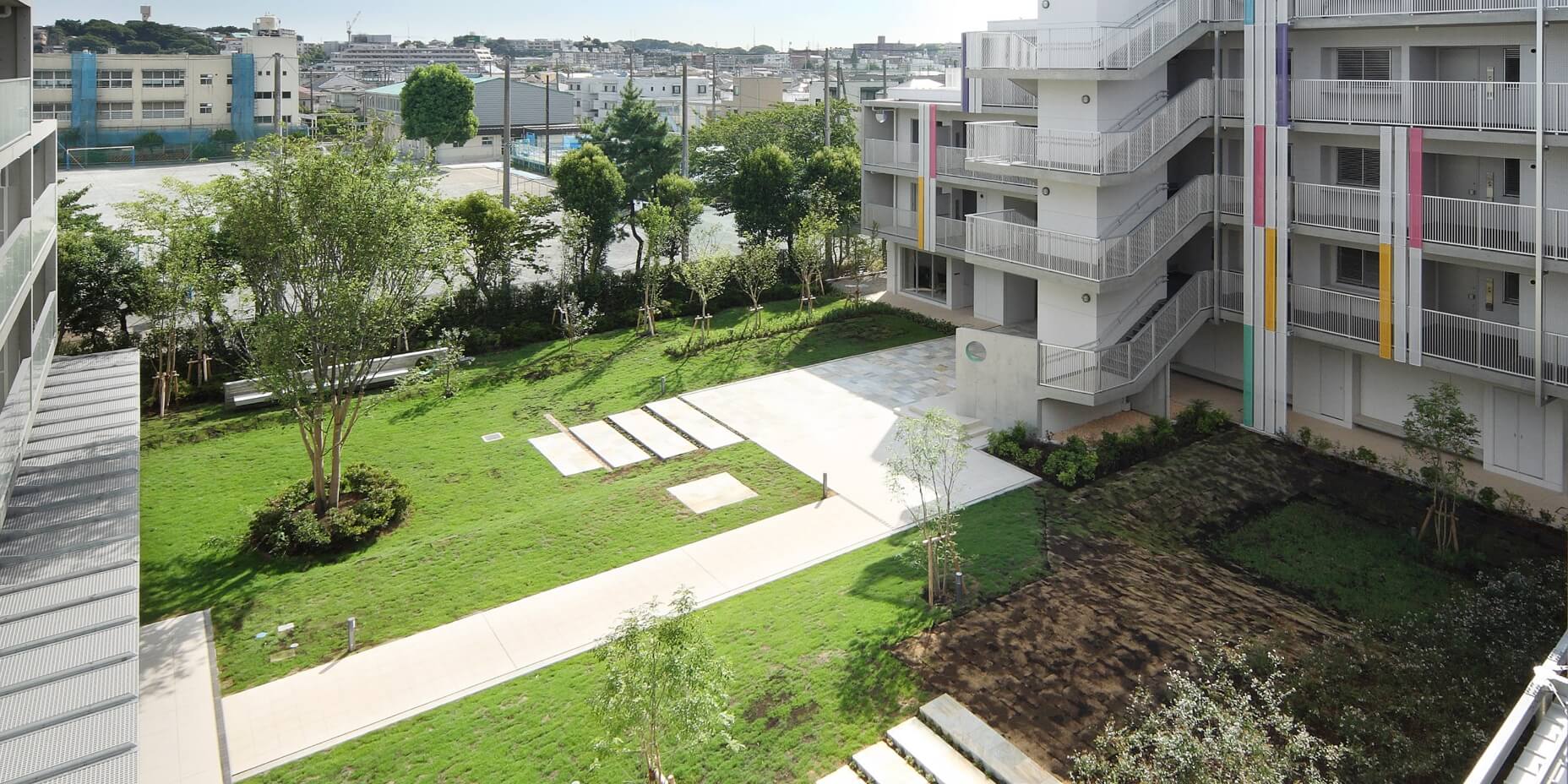 ご家族の憩いの場として。多種多様な樹木が茂る、緑豊かなミニパーク。