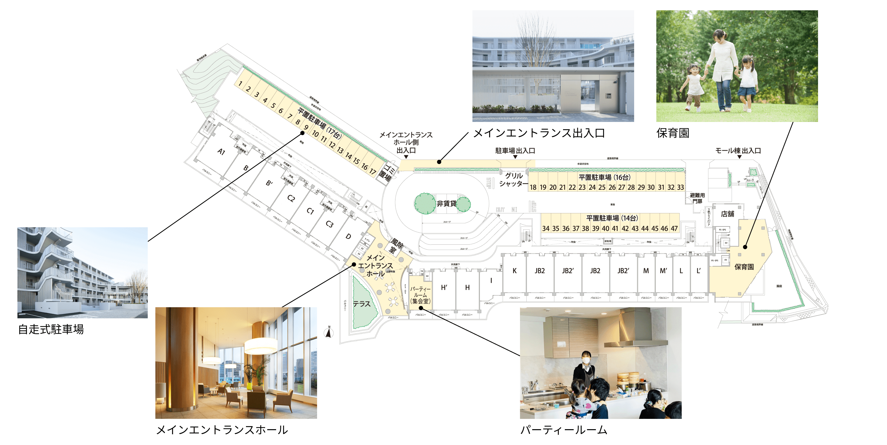 暮らしの中に、子育てに役立つ設備と、多彩なコミュニティスペースをご用意。