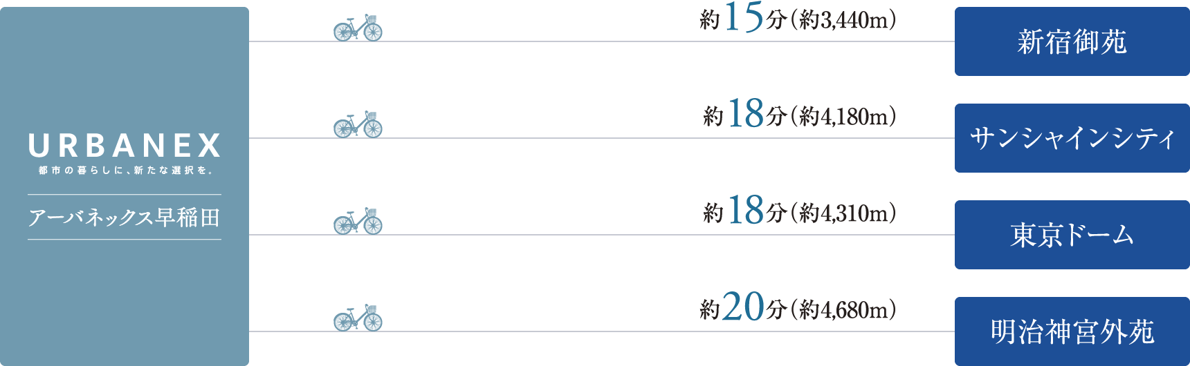 ※1.自転車による所要時間は、Google mapの自動計測に基づいて算出しております。